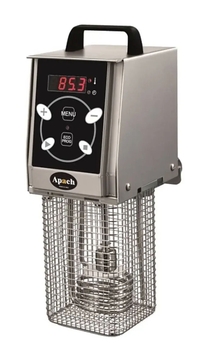 Ротационный кипятильник Apach ASV2 предназначен для приготовления широкого спектра блюд по технологии Sous Vide на предприятиях общественного питания и торговли. Модель оснащена дисплеем с индикацией рабочей температуры, зажимом для закрепления на емкости и циркуляционной помпой, которая обеспечивает заданную температуру по всему объему. Корпус выполнен из нержавеющей стали.