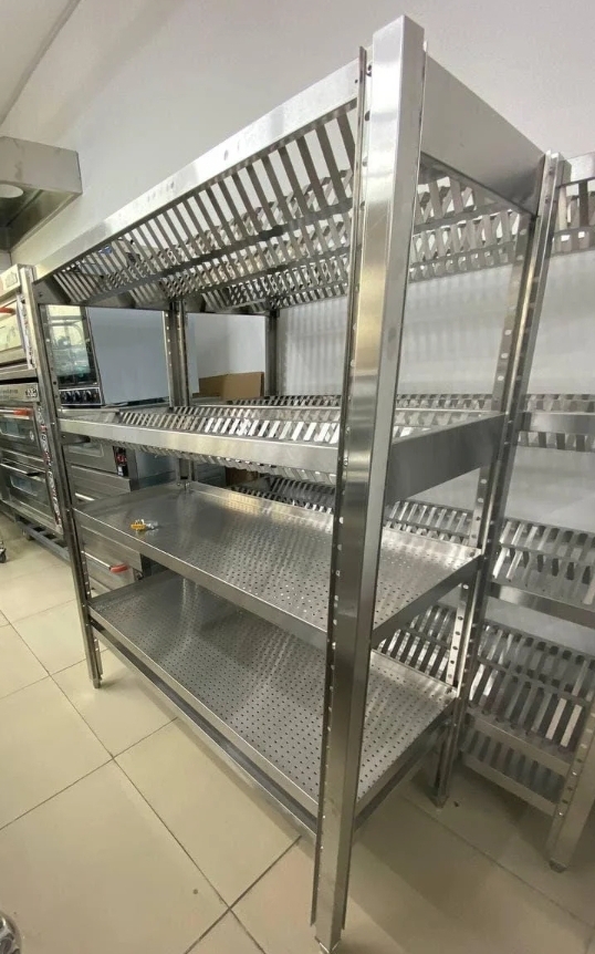 Если Вы ищете стеллажи для посуды, предлагаем Вам производственные стеллажи. Это оборудование отлично подходит для хранения инвентаря или готовой продукции, а также других вещей. Оно изготовлено с учетом строгих требований к качеству стеллажей производственного класса и отличается:
