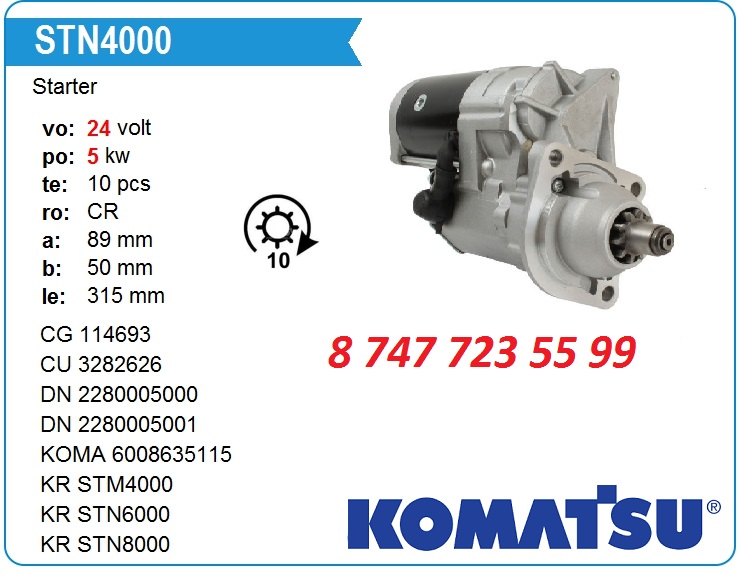 Парт номер стартера: Стартер Tesla (Тесла) TT15859. Стартер Lester (Лестер) 17391N, 18342N. Стартер Denso (Денсо) 228000-5050, 228000-5000, 128000-2561, 228000-5002, 128000-2560, 128000-2562, 228000-5001, 228000-5003, 228000-5052, 028000-6780. Стартер Wai (Вай) 2-1751-ND-2. Стартер Komatsu (Коматсу) 6736814210, 6008635110, 6008635111. Стартер Wilson (Вилсон) 91-29-5425, 91-29-5425N. Стартер Niermann (Ниерманн) 015050. Стартер Cargo (Карго) 114693. Стартер Krauf (Крауф) stn9057, Stn0057. Стартер Case (Кейс) 1987566C1, D129494. Стартер Cummins (Камминс) 3282626, 3675249RX, 3924466, 3957596. Стартер Delco Remy (Делко Реми) 10465536.