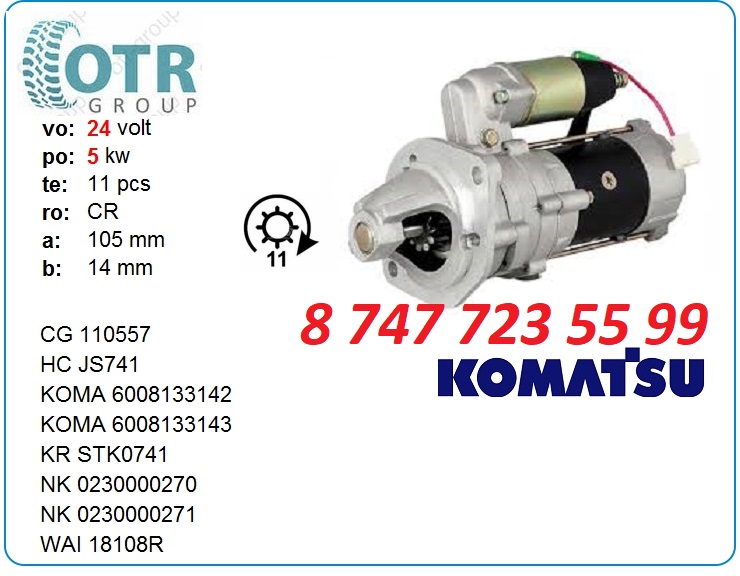 Описание: Стартер Komatsu 24 вольт, 2.8 квт, 11 зубьев